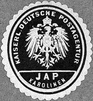 KAISERL. DEUTSCHE POSTAGENTUR / JAP KAROLINEN - blau oval 29x33mm