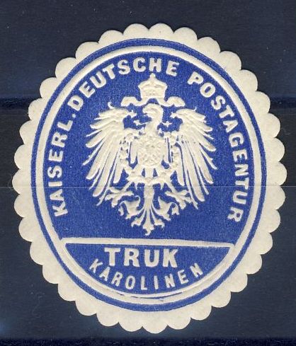 KAISERL. DEUTSCHE POSTAGENTUR / TRUK KAROLINEN - blau oval 29x33mm