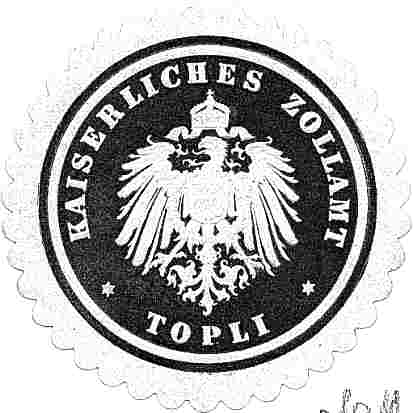 KAISERLICHES ZOLLAMT / TOPLI - blau 36mm: Druckfehler "TOPLI" statt "TOKPLI"