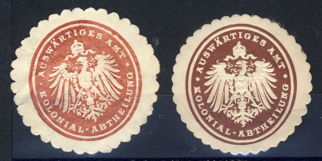 AUSWÄRTIGES AMT / KOLONIAL-ABTHEILUNG - 2.Type 4 Vignetten in rotbraun braun dunkelbraun & schwarz oval 32x35mm